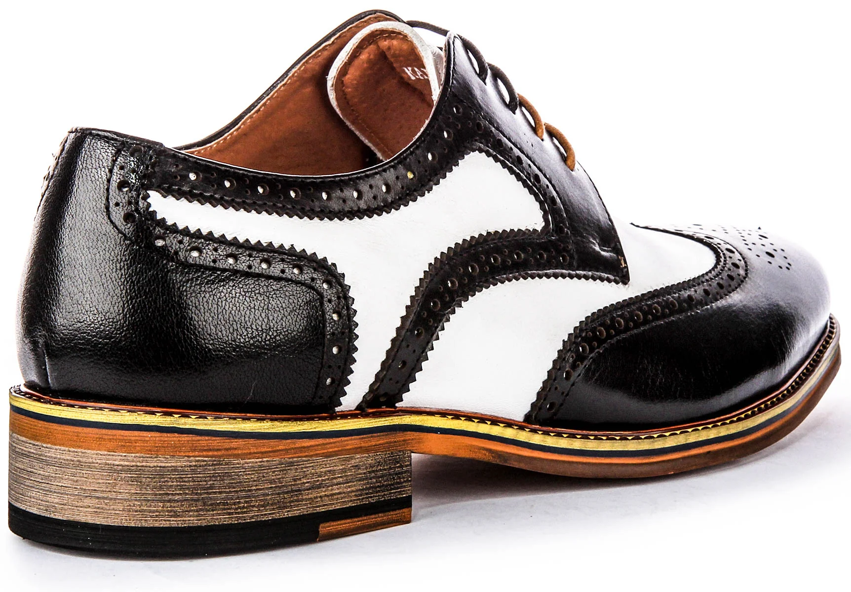 These shoes combine classic brogue detailing with a contemporary two tone design, adding a touch of sophistication to your ensemble. Crafted with premium materials, they offer both style and durability, making them perfect for both formal and casual occasions. The lace up closure ensures a secure and customizable fit, while the burnished finish adds a unique touch of character.