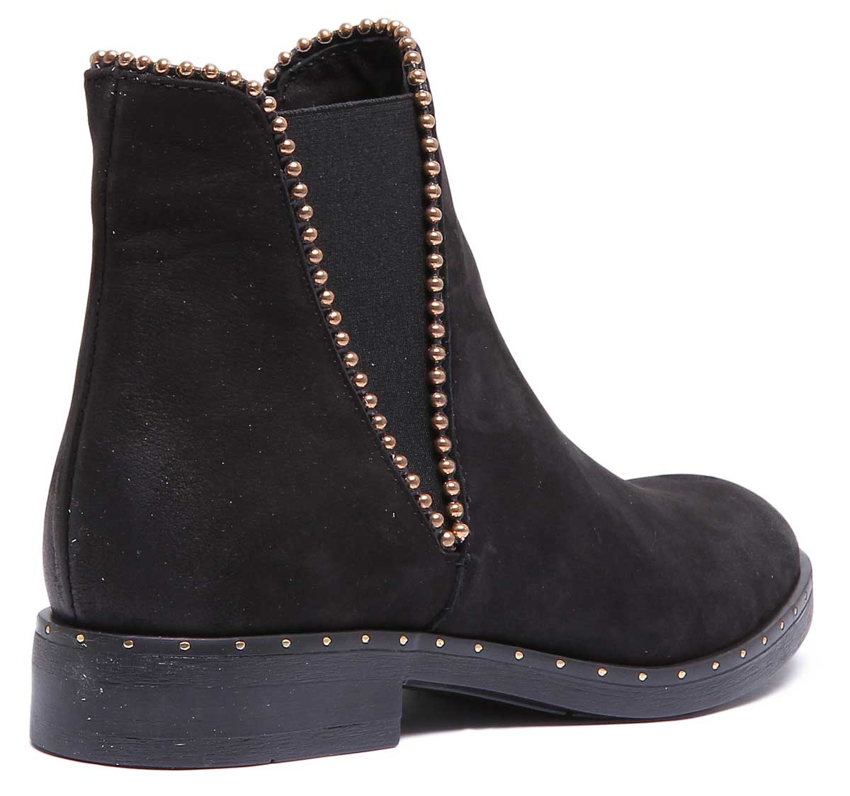 Add some style to your look with these Justin Reess Mea chelsea ankle boots. Made from premium leather upper, these boots feature slip on closure with elasticated side panels for easy on and off and rubber outsole ensures excellent grip and traction on most surfaces. Elegant bead design around the ankle and sole add extra style. These fashionable and versatile boots are perfect for any casual occasion.