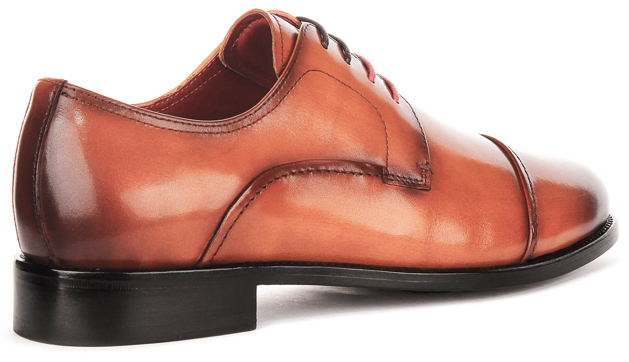 These brogues feature a classic design with a modern twist, boasting a burnished finish that adds depth and character to the rich brown leather. The toe cap detail adds a touch of sophistication, while the lace up closure ensures a secure and comfortable fit.